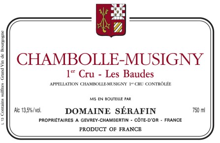 Το πιο εξωτικό από όλα τα κρασιά του Sérafin και το μοναδικό που φτιάχνει στην διπλανή ονομασία προέλευσής του, το Chambolle-Musigny. Το Les Baudes είναι ένα Premier Cru, ακριβώς κάτω από το Grand Cru του Bonnes-Mares και συγγενεύει με αυτό σε στιλ, όσον αφορά τα πραγματικά εξωπραγματικά αρωματικά πυροτεχνήματα. Παλαιωμένο για 14 μήνες σε 100% καινούργιο γαλλικό δρύινο βαρέλι, μπορεί να παλαιώσει τουλάχιστον για 20 χρόνια.